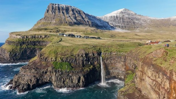As per Forbes: “Perched on the edge of Vágar Island, Gásadalur clings to cliffs like a half-remembered legend where turf-roofed homes dot the glacial valley—framed by the towering silhouette of Árnafjall—the highest peak on Vágar (at 722 meters) known as the ‘eagle’s mountain’. Meanwhile, Múlafossur Waterfall tumbles into the Atlantic below—its roar softened by Northern Fulmars wheeling overhead.”
