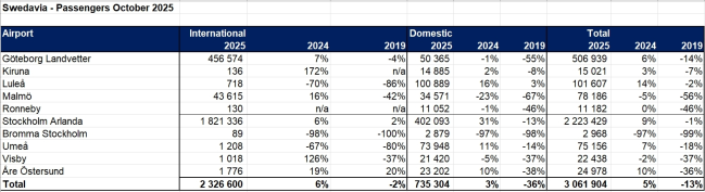 Swedavia’s traffic statistics for October 2025: Strong performance for both international and domestic