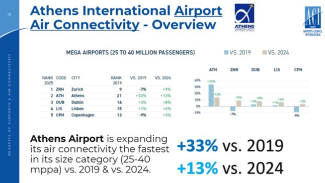 Great news for the Greek economy and society, if we take into account that Athens International Airport increased its Air Connectivity by 33% in 2025 versus 2019 (ACI Europe Air Connectivity report 2025). It seems that we delivered all above positive impacts to the Greek economy and society by a multiplier of 3! 😊