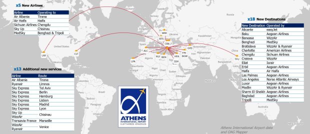 This year, Athens welcomed a total of 31 Route Developments, including 18 New Destinations and 13 Additional New Services on existing routes, with 5 New Airlines joining Athens network.