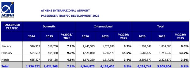 (b) the resilience of the Athens market in March 2026, despite the Middle East conflict, as passenger traffic grew further to March 2025 by almost 4%.