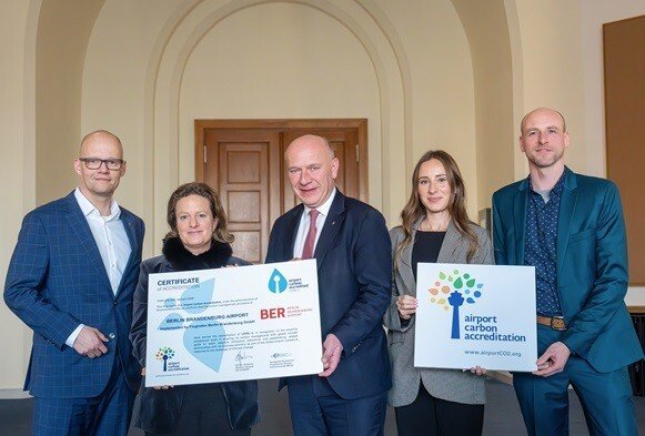 Berlin Brandenburg Airport has once again been recognised for its CO₂ management. BER is Germany’s first airport to achieve Level 4 Airport Carbon Accreditation (ACA). This represents another milestone on the road to CO₂-neutral airport operations. The award was announced today with Berlin’s Governing Mayor, Kai Wegner, at the Rotes Rathaus.
