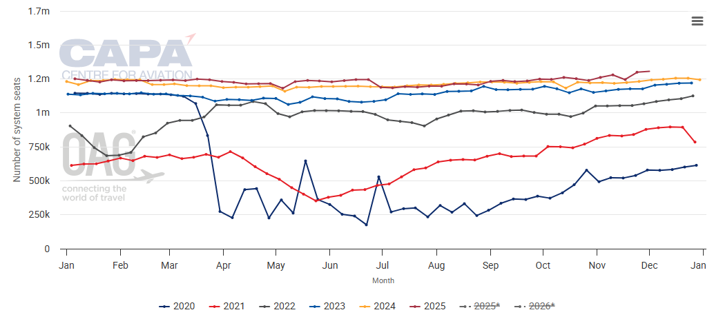 Moreover, seat capacity in 2025 has not grown comparable to 2024 possibly in anticipation of the commencement of operations at Navi Mumbai being imminent.