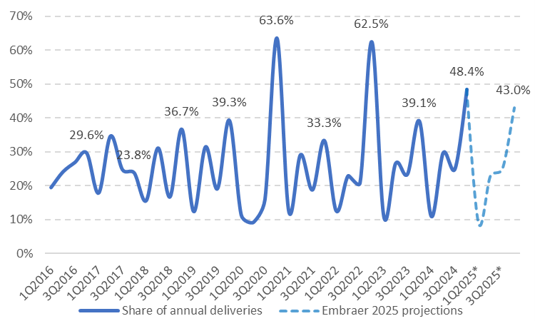*Embraer projections for 2025, based on midpoint delivery target to 81 aircraft.