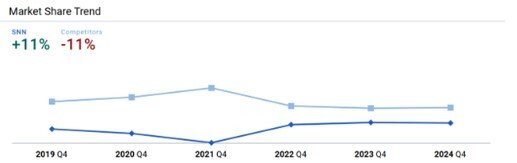 The airport is showing strength in the US market, with its market share of US traffic within its catchment increasing by 11% between 2019 and 2024. Interestingly, Shannon shows signs of strong inbound demand from the US, with 62% of US journeys within its catchment being made by visitors.